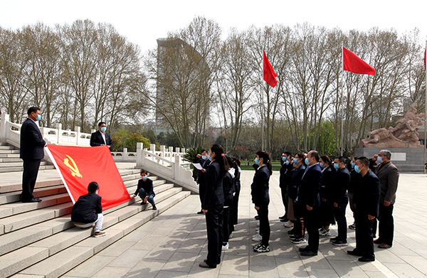 3月31日上午,在五分公司黨總支的組織下,機(jī)關(guān)第一、二黨支部在家黨員、團(tuán)員青年、群眾共三十余人統(tǒng)一著裝,徒步來到華北軍區(qū)烈士陵園,開展“緬懷英烈 愛國(guó)教育”主題黨日活動(dòng)。為了讓團(tuán)員青年、群眾都受到教育,此次活動(dòng)范圍擴(kuò)大到了全體職工。在紀(jì)念碑前,全體職工向長(zhǎng)眠在此的烈士們致默哀、三鞠躬,之后整齊列隊(duì)、緩步向烈士們獻(xiàn)上自己親自動(dòng)手制作的小白花,隨后面向紀(jì)念碑,右手舉拳,在黨總支書記賈銀建領(lǐng)誓下,立足崗位鄭重宣誓。
