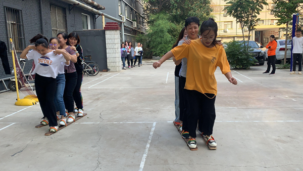 本次活動項(xiàng)目有協(xié)力競走、五子棋、套圈游戲等。機(jī)關(guān)共有30余名職工參加。2點(diǎn)30分,隨著分公司黨總支書記的洪亮宣布,比賽準(zhǔn)時(shí)開始。首先進(jìn)行的是協(xié)力競走,一項(xiàng)具有挑戰(zhàn)性的項(xiàng)目。參賽選手四人一組,共穿一雙板鞋,集體行進(jìn)。隨著一聲哨響,競賽馬上進(jìn)入白熱化。選手團(tuán)結(jié)協(xié)作,奮力爭先,觀眾激情高漲,加油助威!領(lǐng)先的職工不驕不躁,動作協(xié)調(diào),保持速度,落后的職工雖然出了一些狀況,但始終不言放棄,全力追趕,參賽職工都體現(xiàn)出奮勇拼搏的精神。最終以用時(shí)長短決出了冠亞軍。