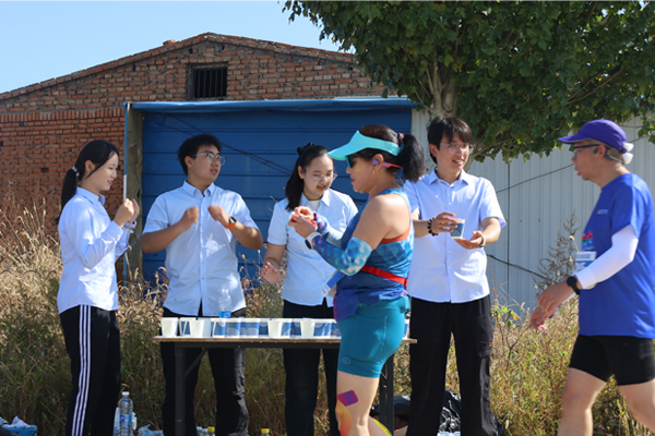 賽道上,秩序維護組的志愿者們化身“最熱情的指引者”??吹竭x手因路線不熟悉放慢腳步,立刻快步上前微笑指引,同時大聲喊出“加油!前方500米補給站”;遇到年長選手體力不支,主動遞上溫水,輕聲叮囑“調(diào)整呼吸,堅持就是勝利”。補給站內(nèi),志愿者們更是以“秒級響應(yīng)”服務(wù)每一位選手。左手遞水杯、右手遞紙巾,動作連貫嫻熟,還不忘根據(jù)選手狀態(tài)送上鼓勵:“您跑得真棒,加油!”一句句溫暖的話語、一個個有力的手勢,讓選手們瞬間充滿力量。“聽到志愿者喊‘加油’的那一刻,感覺腿上又有了勁,他們比我還在意我的成績,特別感動?!币幻状螀⒓玉R拉松的年輕選手笑著說。