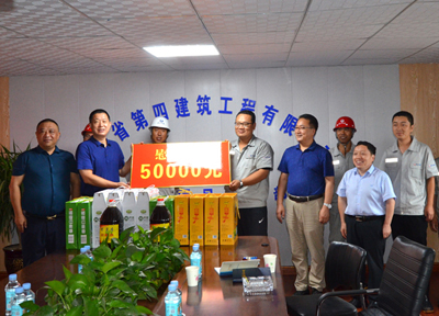 8月5日,河北省省直工會(huì)副主任馬永紅、辦公室主任馬濤,冒雨到四分公司石鋼項(xiàng)目部進(jìn)行暑期慰問(wèn),為項(xiàng)目職工送上五谷雜糧、食用油等物品及慰問(wèn)金。省四建公司黨委書記、董事長(zhǎng)董富強(qiáng),黨委副書記、工會(huì)主席李懷生一同參加。
