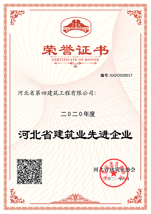 近日,經(jīng)河北省建筑業(yè)協(xié)會(huì)審定并網(wǎng)上公布,公司再次喜獲“2020年度河北省建筑業(yè)先進(jìn)企業(yè)”榮譽(yù)稱號(hào),公司已多年蟬聯(lián)此項(xiàng)榮譽(yù)。