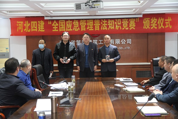 12月20日,公司“第三屆全國(guó)應(yīng)急管理知識(shí)普法競(jìng)賽”頒獎(jiǎng)儀式在三樓會(huì)議室舉行,14名取得省市區(qū)前百名成績(jī)的優(yōu)秀選手受到表彰。公司黨委副書記、總經(jīng)理唐志強(qiáng),總工程師高任清、副總經(jīng)理劉金河為獲獎(jiǎng)?wù)叽眍C獎(jiǎng)。