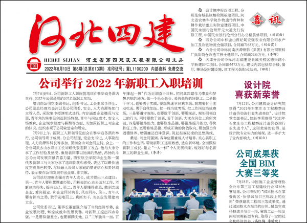 公司黨委立足講好四建故事,傳播四建美譽(yù),發(fā)力宣傳平臺(tái)建設(shè),做亮業(yè)績(jī)宣傳、做好典型宣傳、做強(qiáng)形象宣傳,發(fā)揮了最大宣傳效能。2022年1-11月份,出版《河北四建》11期,公司網(wǎng)站發(fā)稿比去年同期增加166 %;微信公眾號(hào)發(fā)稿期數(shù)和條數(shù),比去年同期增加28%和20%;抖音號(hào)發(fā)布視頻數(shù)比去年同期增加137.5%。8月份,公司3個(gè)平臺(tái)在中施企協(xié)組織的2022年工程建設(shè)企業(yè)文化作品競(jìng)賽中均獲獎(jiǎng),其中《河北四建》獲得報(bào)紙類(lèi)優(yōu)秀獎(jiǎng)、公司網(wǎng)站獲網(wǎng)站類(lèi)優(yōu)秀獎(jiǎng)、公司微信公眾號(hào)獲公眾號(hào)類(lèi)優(yōu)秀獎(jiǎng)。(黨委宣傳部)