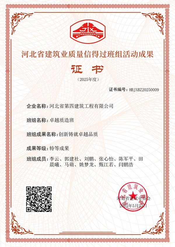 5月25日,三分公司收到河北省建筑業(yè)協(xié)會關于2025年度河北省建筑業(yè)質量信得過班組活動結果的通報,由分公司“卓越質造班”班組完成的“創(chuàng)新鑄就卓越品質”成果,被評為“特等成果”。