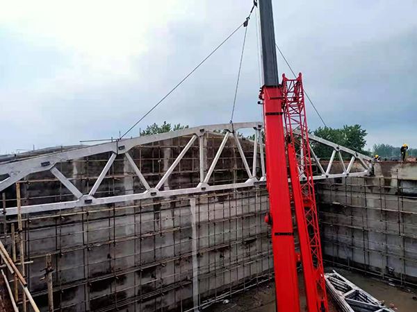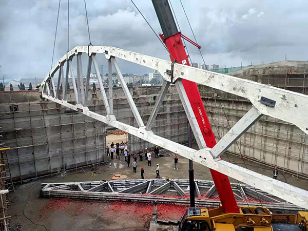 5#平房倉的倉頂由16榀預(yù)應(yīng)力屋架梁和400塊屋面板構(gòu)成,每榀預(yù)應(yīng)力屋架梁重14.24噸,長度達30米,平房倉的工作重點是預(yù)應(yīng)力屋架梁的制作及吊裝,工作難度大、技術(shù)含量高,項目部緊抓屋架梁預(yù)制這道關(guān)鍵工序,提前謀劃,做好準備。