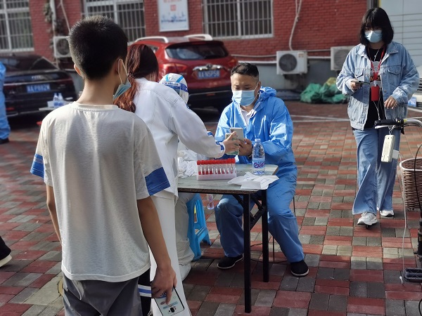 “沒問題,馬上到”,孫志華一邊接電話,一邊穿衣服往外走。一路小跑很快來到小區(qū)核酸檢測(cè)點(diǎn),只見大家已經(jīng)有秩序地排成兩隊(duì),拉開安全距離,耐心地等待著。