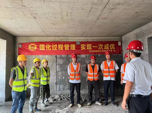 “為了強化全員質量意識,弘揚工匠精神,促進操作技能、管理技能提升,現(xiàn)開展質量月技能競賽……”項目主管師蔡昭作為總裁判作了賽前動員,宣布了比賽內容、規(guī)則、程序、評分標準等,今年新入職職工、部分作業(yè)工人及工長觀賽。